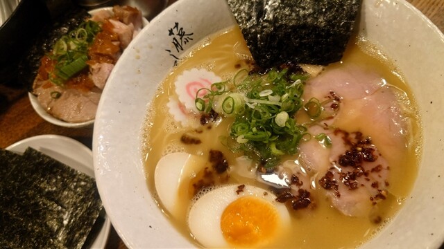 平日 16:20頃 伺いました。 恋しくなったレモン生姜を頂きに。 先客3名、2名で営業。 入り口で食券を購入。 鶏白湯特製ラーメン(1120円) チャーシュー丼(300円) 極上海苔(150円) 黒ウーロン茶(300円) 店内着席、7分程で着丼。 コシあり歯切れよ... 詳細を見る
