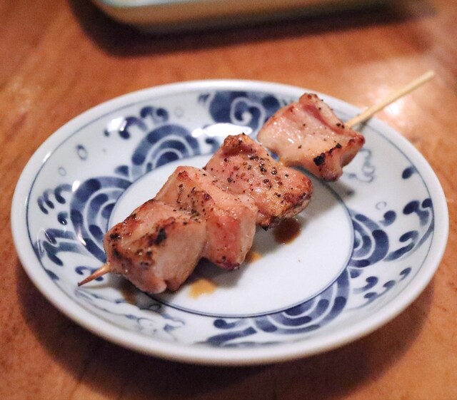 【注文品(消費税込み)】 ・お通し(お新香):400円 ・中瓶ビール(サッポロラガー):750円×2本 ・れば(タレ)1本:250円 ・てっぽう(塩):250円 ・しろ(タレ):250円 ・かしら(塩コショウ):250円 ・煮込み:600円 (串の味は固定のようでしたが、ればは選べる... 詳細を見る