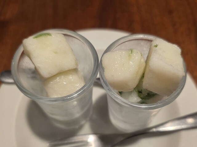 テラス席と言われる(地下だけど)、店外の席で食べたらサービスのシャーベットもらえたのは想定外というか予想外だった。