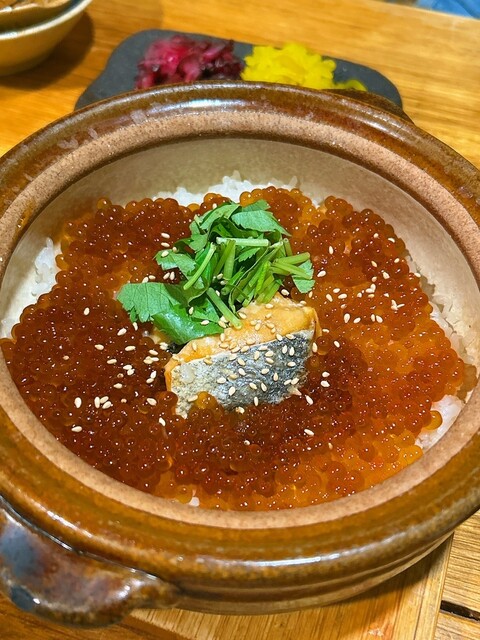 +500円で鮭イクラの土鍋ごはんに変更