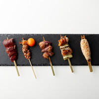乾杯シャンパン付き2,5時間飲み放題コース 料理のおいしさと安定したのコースです。 ・前菜 ・自家製のポテトサラダ ・卵黄の醤油漬け ・厳選串焼き10種類 ・出汁付き〆の鶏そぼろ丼 ・甘味 *内容が一部変更されることがあります。ご了承くださいませ。