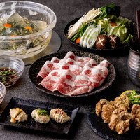 90分厳選ポークしゃぶしゃぶ食べ放題をメインとした2時間飲み放題付コースです。 特製の「水晶鍋」を使用し、厳選ポークや新鮮な野菜を秘伝のあおさ出汁でしゃぶしゃぶしてお召し上がりください♪ そのほか生つくねの3種盛りをはじめ、唐揚げ、〆、デザートなど全5品をお楽しみいただけます。 ご友人同士のお食事やデート、歓迎会など幅広いシーンでご利用ください!