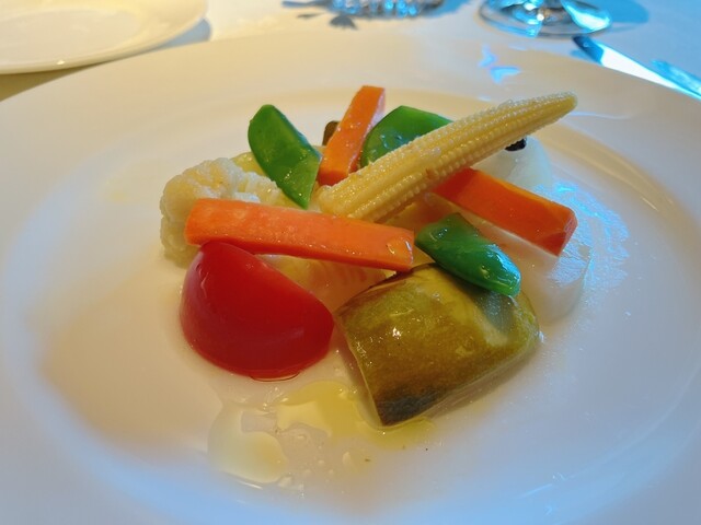 ランチなので軽いコースだが、アミューズ、前菜は魚、肉