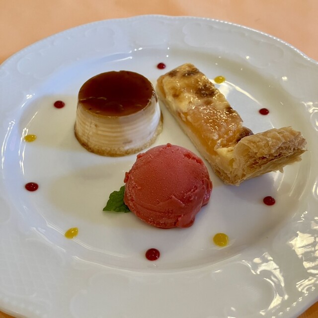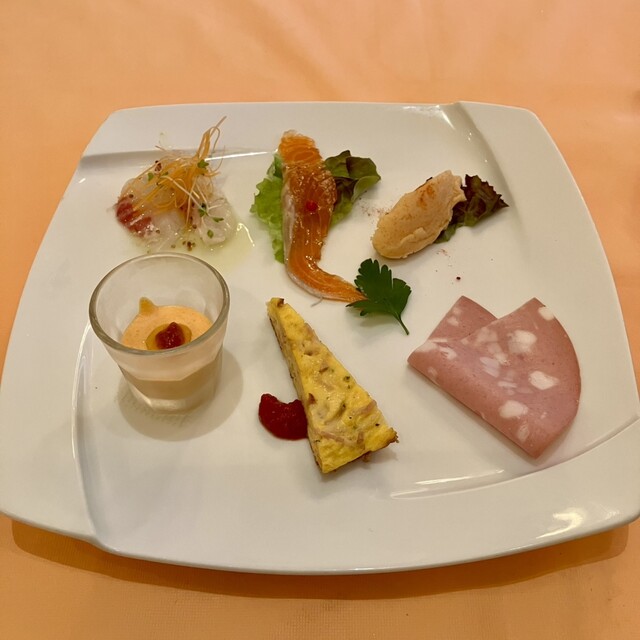 (ゲブルツノラミナール、本日の前菜の盛り合わせ(1人前 9種)、生ウニのスパゲッティ、モンテプルチアーノ ダブルッツォ、モンテプルチアーノ ダブルッツォ、石見豚ロース肉のロースト・きのこソース、アプリコットのクラフティーパイ) 10,670円 ゲヴュルツは初めて飲んでみましたが、確かにライチの... 詳細を見る
