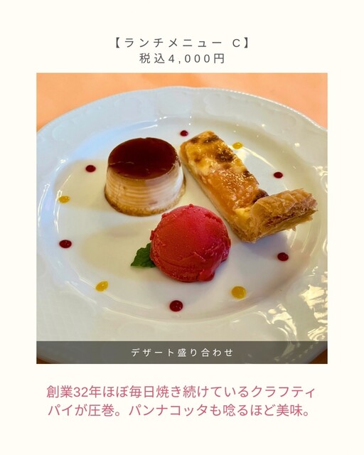 セレーナ25年の歴史の中でお客様から特に人気の高い定番のお皿を集めてコースにいたしました。 初めてセレーナでお食事をされる方におすすめのコースとなっております。 (一例) 真鯛のカルパッチョ イカ墨のタリアテッレ 豚のロースト デザート盛り合わせ コーヒー 食前の1ドリンク付き またメッセージプレートもプラス500円で受け付けております。 デザートのプレートのフチにチョコレートで『Tanti auguri "お名前"! 』(イタリア語でお誕生日おめでとうの意)のような形でお作りできます。
