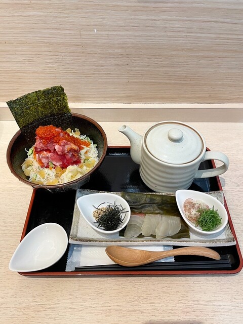 日本料理 尾崎幸隆の海鮮丼専門店で 選べる海鮮丼の松セットを頂きました! ベースは梅の海鮮丼で(マグロ、サーモン、鯛、 数の子、きゅうり、ネギなど入ってます) +30g... 詳細を見る