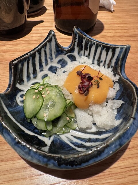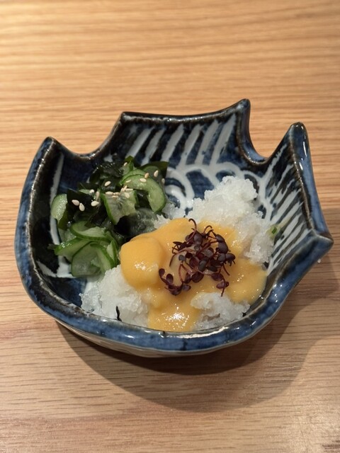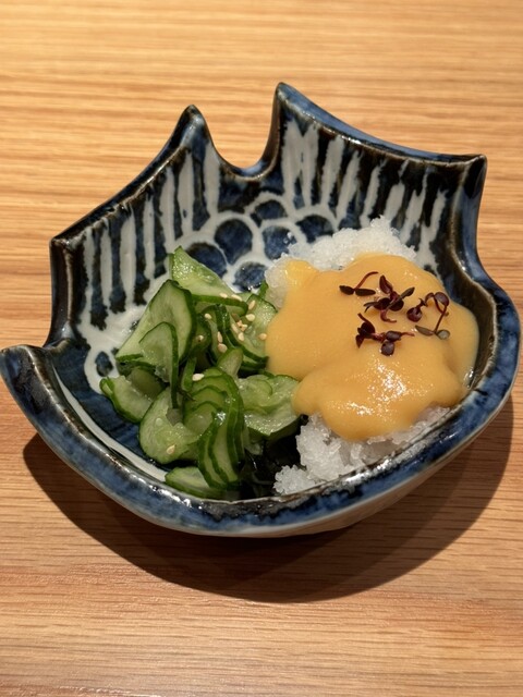 まずは、さらし鯨。酢味噌の酸味とさらし鯨、きゅうりが合う。