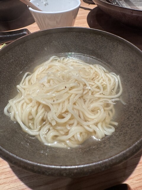 〆のらーめんも、旨みたっぷりの出汁でサッと茹でたら出来上がり。