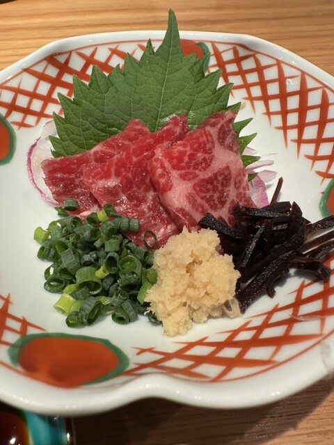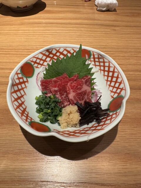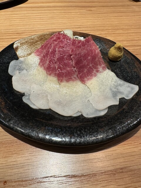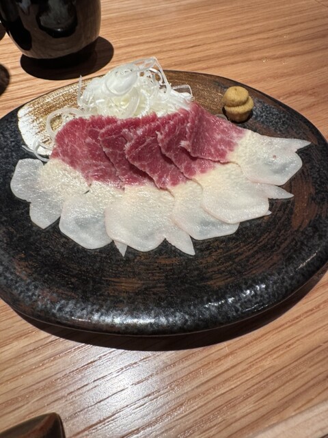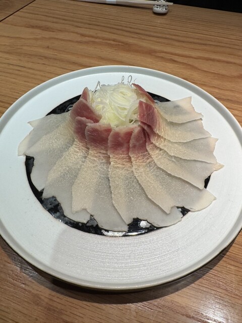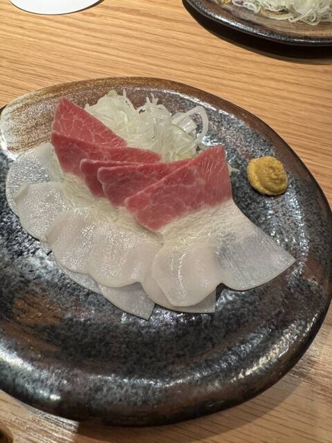 尾の身のお刺身は、馬刺しのような味わいで脂が美味しい。
