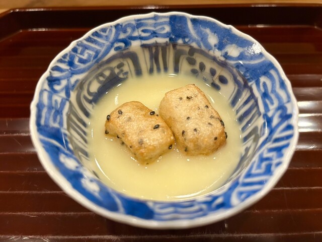 ・すっぽん饅頭、九条葱、出汁餡掛け