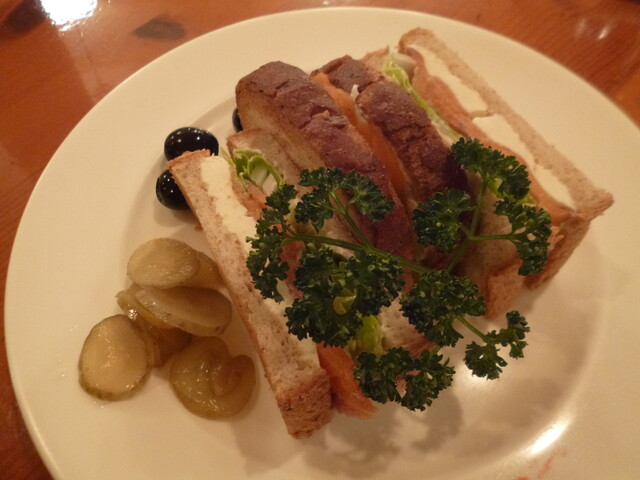 サンドウィッチの生地は、ライ麦をチョイスし、焼かずに戴いたのですが、