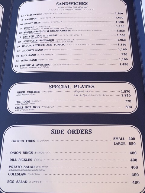 サンドイッチ、スペシャルプレート、サイドオーダー。