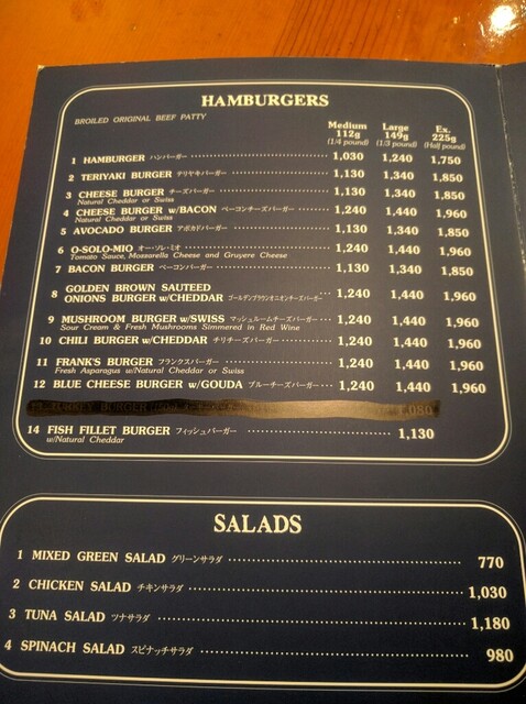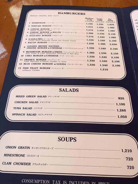 また、先輩曰くスープやサラダ、サイドオーダー、アルコール、エクストラサイズ等気軽に注文すると、あっという間にハンバーガー屋さんとは思えない支払額になってしまう所も、貧乏庶民の私には気を使わなくてはならない処です。