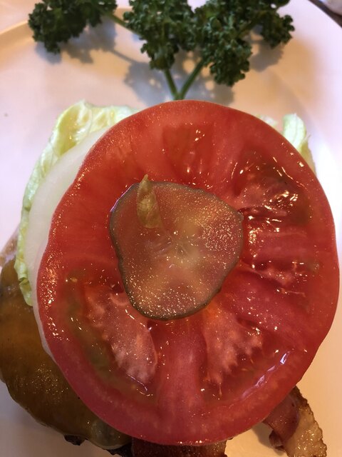 トマト・オニオン・レタス・チーズ・パテ・バンスって感じか?