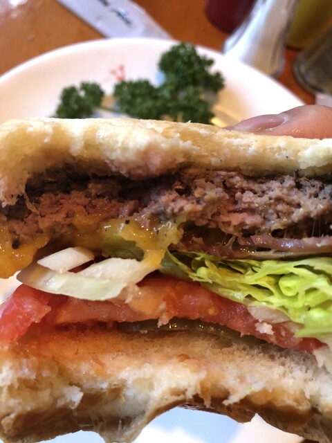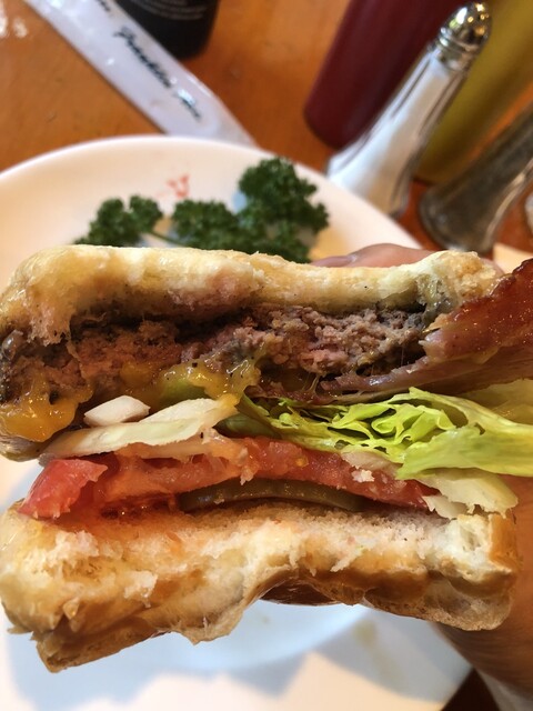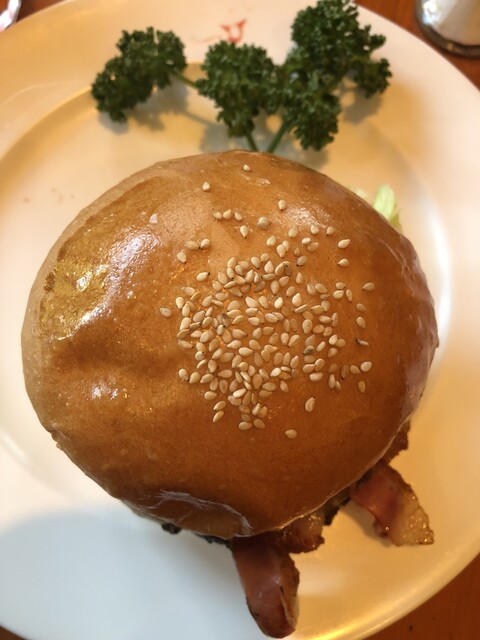 ④やってきたベーコンチーズバーガーは無難な美味しさ、矢張り一回来たことあるせいか?そうでないかも知れないが?私の標準的な美味しさといえます。