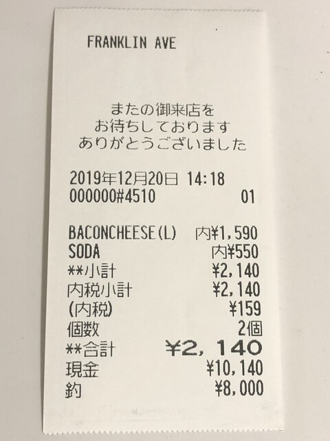 ①ティエリーマルクスでハンバーガーが終売してしまい食べ損ねた悔しさ、で来ましたフランクリンアベニュー。訪問は2回目です。