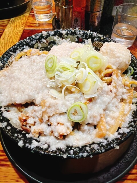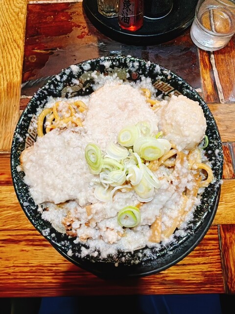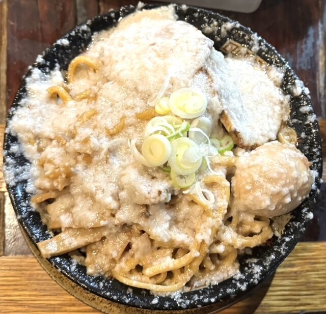 爆盛油脂麺 1100円 “爆盛油脂麺”は、極太麺にタレと背脂をこれでもかと絡めた高濃度・高カロリー系の油そば 見た目のインパクトこそ“こってりジャンク”ですが、実際には背脂の甘みとまろやかさが先に立つタイプで、辛味や醤油の角は抑えられています  噛みごたえのある太麺は、とにかく脂とタレ... 詳細を見る