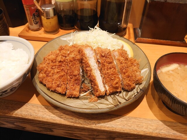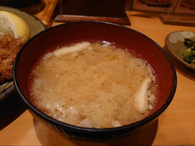 シーフードミックスAはエビ、ホタテ、マグロカツとなります。カリッとザクッと揚がってて(自分はこれ好きなので)、マグロもホタテも美味しいし、エビは見かけより中身が充実、プリッとしてて旨い、自分には十分満足な品です。で、ご飯もお味噌汁(大...