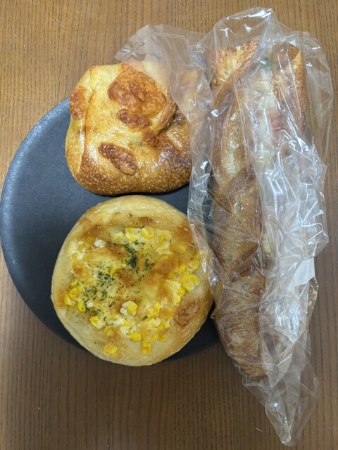 セイジアサクラでいつものチーズカレーパンとコーンパン、そして塩パンをいただきました。