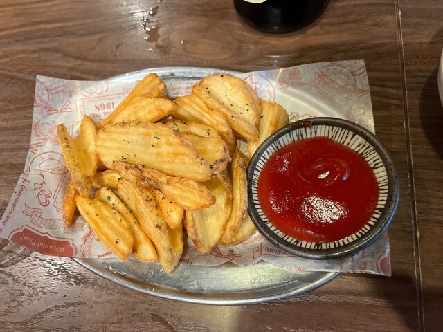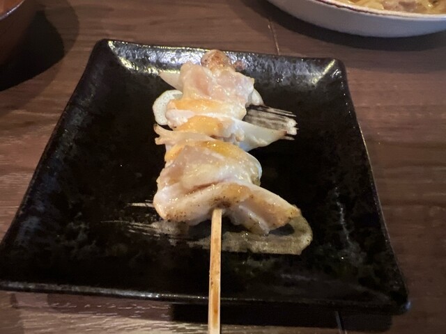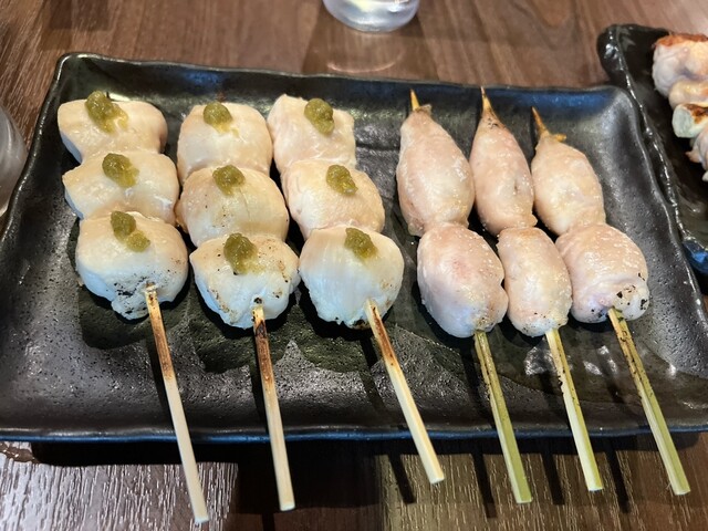 注文したのは、生ビールと串焼きの鷄皮、砂肝、レバーにポテトサラダです。 ハッピーアワーあるようで、19:00までは生ビール、ハイボール、ウーロンハイが¥100-です。 ポテトサラダは、ちょっと大きめの器に山に盛られてやってきます。 じゃがいものゴロっと感とツナが下に入っていて、期待を裏切らない食感でおいしいです。 串焼きも本数の縛りがなく、1本1本の身が大きく、言うまでもな... 詳細を見る