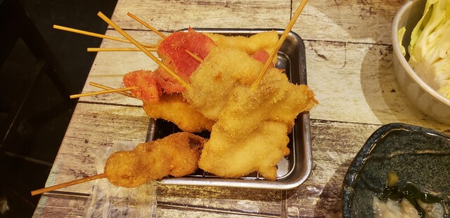 【串だおれ 五反田西口店】 2024年12月木曜の18時少し前に、飛び込み2名で初入店。 ※お席で喫煙(紙タバコ含む)出来ます。 テーブル席は全て予約で埋まっているそうで... 詳細を見る