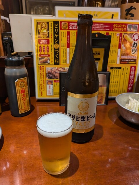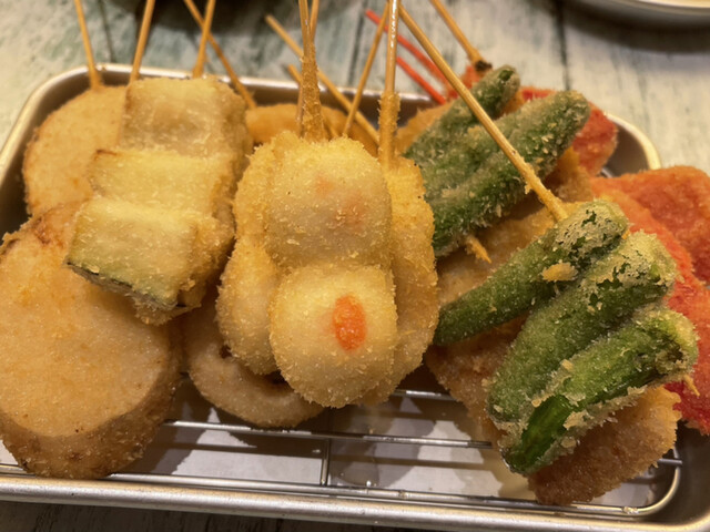 人気の串カツは1本55円~と高コスパ!揚げ方や油切りを工夫し軽い食感と深い味わいを実現しました。70種以上のドリンクがお手頃価格で、対象のメガハイボールなどが大吉で無料になる「おみくじチャレンジ」も実施中♪早い時間がお得な五反田コースもご用意しました!大坂をイメージしたレトロな店内は少人数~団体宴会までご利用可能で、20名様から貸切のご要望もお気軽に◎翌4時まで営業しており、遅い時間も大歓迎です!