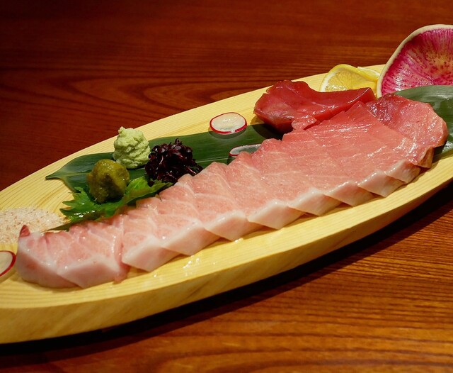 本鮪の特有な風味と脂を活かし、刺身、創作料理、焼魚串などバラエティ豊かな料理で贅沢な美食体験を提供。新鮮な食材と繊細な調理技術が絶妙に調和し、心温まるおもてなしと上質な空間でお食事を。日常を忘れ、本鮪や創作料理の究極の味わいに浸りながら、贅沢なひとときをお楽しみください!五反田での歓送迎会・宴会・接待等は「たくみ」へ!