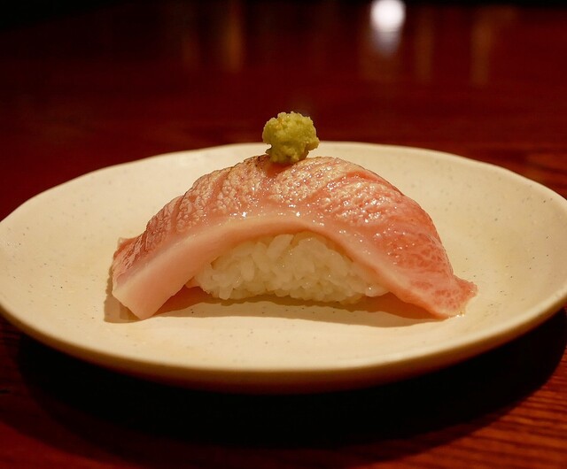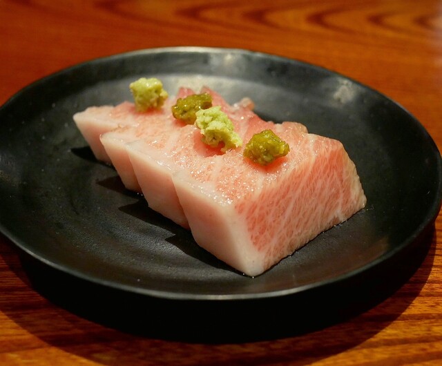 贅沢!本鮪の断面刺しを炭で炙ります!香り、とろける鮪を・・・