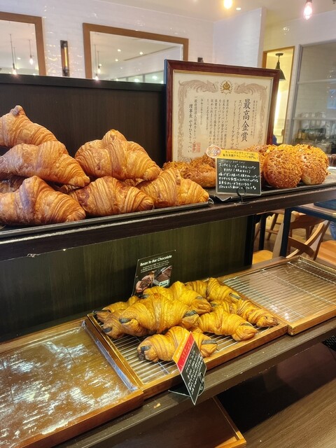 私のお気に入りメロンパンが残っており迷わずトレイに。お客様要望から誕生したクロワッサンにチョコを詰めたパンですが、コレ美味しい。バターたっぷりのクロワッサンにチョコ合いま...