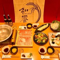 資源循環型農業を実践する農業法人が営むしゃぶしゃぶ専門店【和饗】。冷凍不使用の生豚肉と農場直送の野菜を使用した「国産生豚肉と産直野菜のしゃぶしゃぶセット」が名物です。更に活魚水槽を導入し、新鮮な魚介類も愉しめるようになりました。環境に優しい製法の自社醸造日本酒とともにご堪能ください。木目を基調とした店内には、カウンター・テーブル・個室席をご用意しております。接待・各種宴会など様々なシーンにどうぞ。