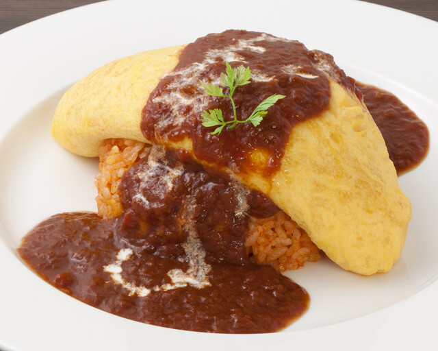 こちらもその一つ。オムライスが名物だが、ほかにもパスタ、ドリア、カレーとまるでファミレスのような人気メニューが並ぶ。ランチは平日のみ。