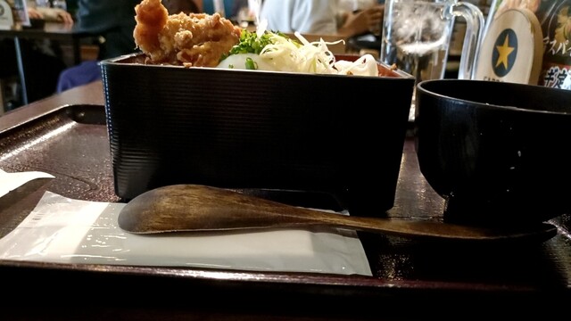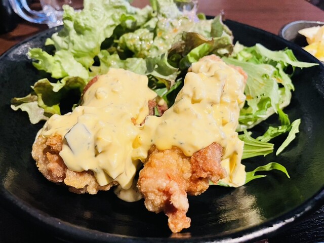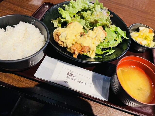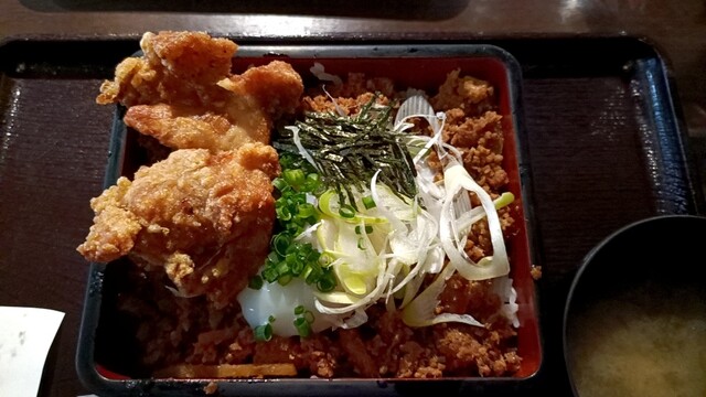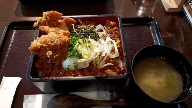 お昼時に適当に入ったお店だったのですが、メニューを見ながら、あのなるとやさんのお店だ!と気づきました。 なるとやさんと言えば若鶏の半身揚げが有名ですが、こちらでも定食屋さん風に同じものが食べられるみたいです。 鶏メンチとザンギ2個入ったミックスメンチ定食にしました。 お豆腐とお味噌汁が付き、白... 詳細を見る