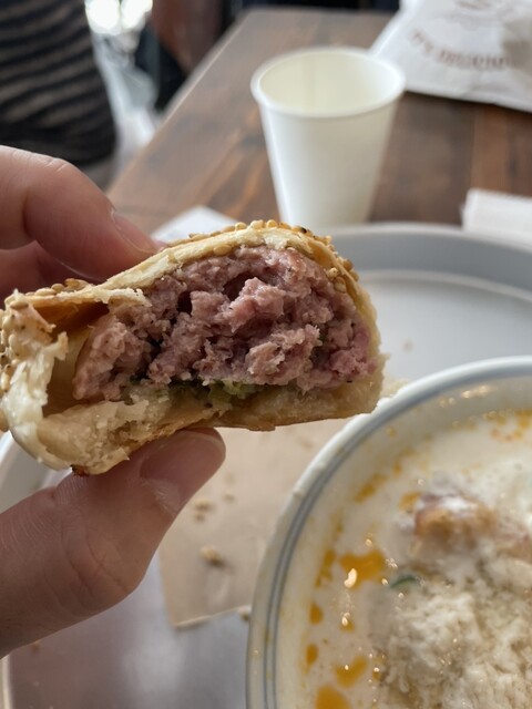 シャントウジャンとパンをいただきました。胡麻パンに卵を挟むサンドをいつもいただきますが、今日は大根切り干しとピーナッツ餡が中に入ったパンを。パン生地がクロワッサンのようにパイ生地風なため、サクサクでほ...