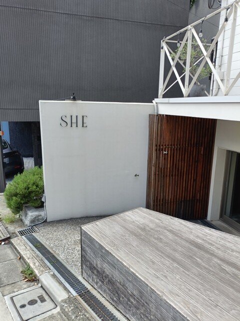 JR目黒駅で下車、西口から出て”目黒通り”を横断、”ドレメ通り”をしばらく進み、見つけましたのは、この日の目的の『SHE meguro』さんというお店でした。