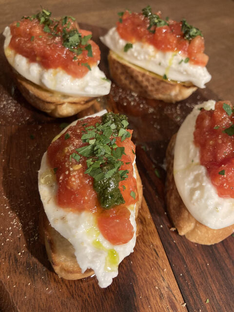 ブッラータチーズのカプレーゼ”ブルスケッタで” (by お店)