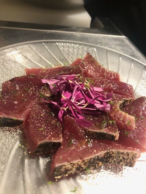 カツオの炙りカルパッチョ (by お店)