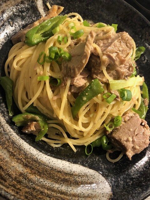 本マグロテール肉と万願寺唐辛子のペペロンチ... (by お店)