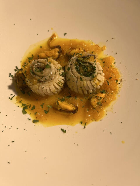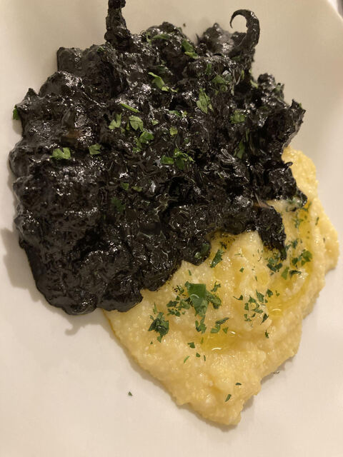 大分県産スミイカの墨煮とポレンタ (by お店)