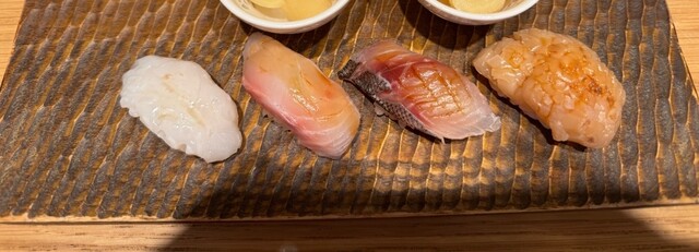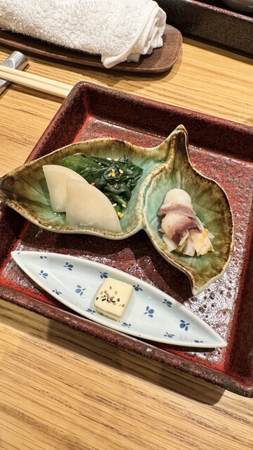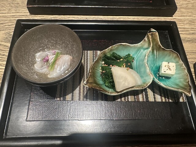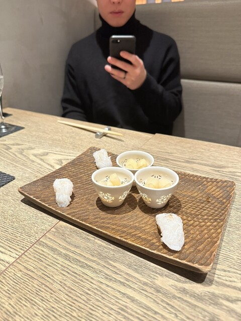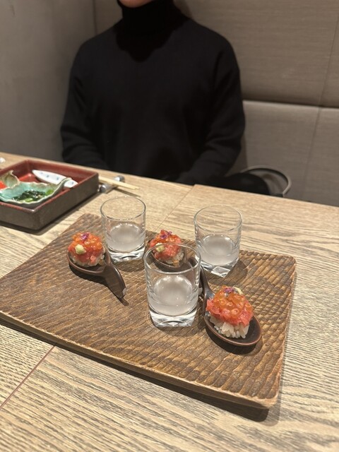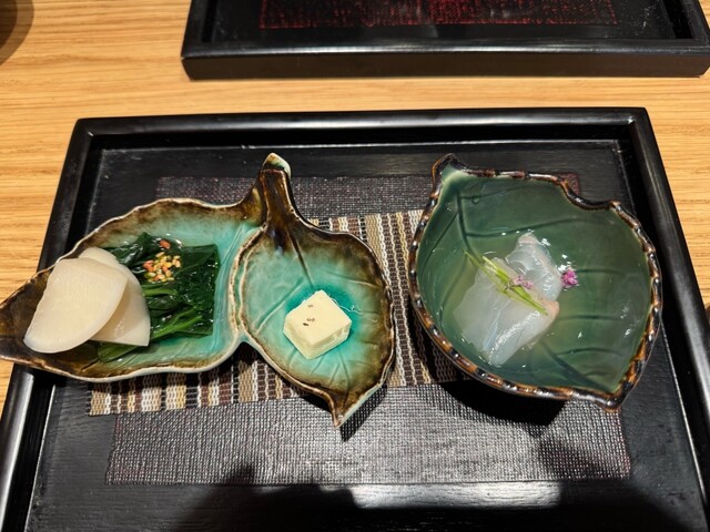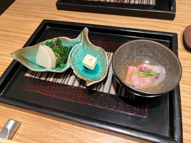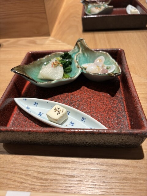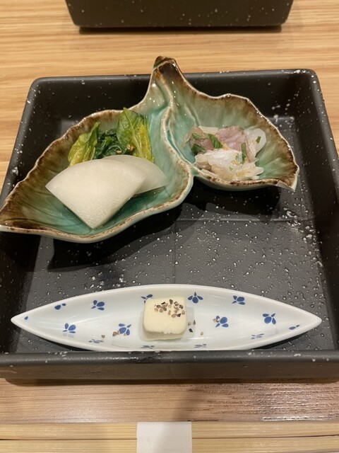 「ペアリングなしでも、お鮨そのものの完成度が高いので大満足。最初に出てきた前菜の盛り合わせからして、仕事の丁寧さが伝わってきます。