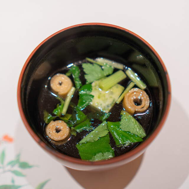 振る舞うのは<おまかせコース>のみ。コースの始まりは、心を解きほぐす、濃厚なシジミのスープからウィットの効いたつまみが続き、伝統かつ正統な江戸前握りへと続きます。是非ご賞味ください