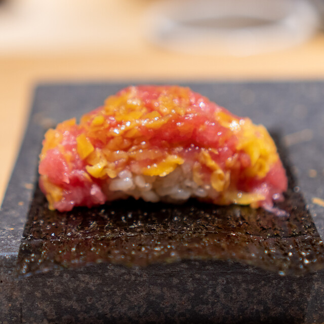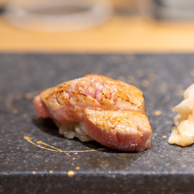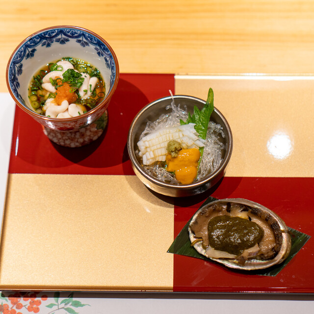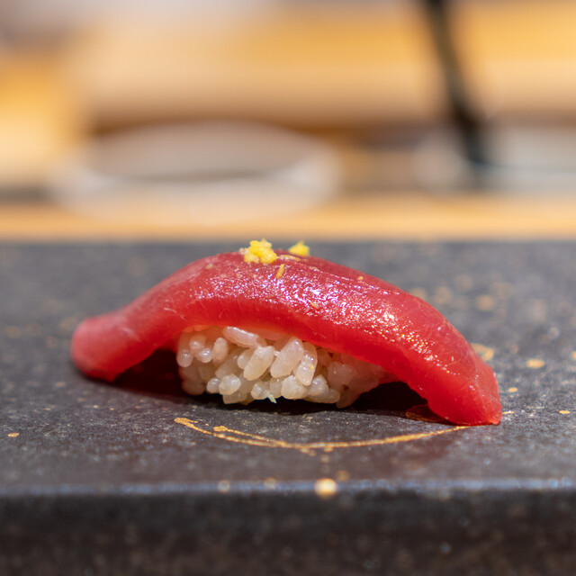 幾多の経験で培った大将の鋭い感性が光る、遊び心溢れたつまみと、伝統かつ正統をゆく江戸前鮨との計算し尽くされた対比が一つのコースの中で完結。