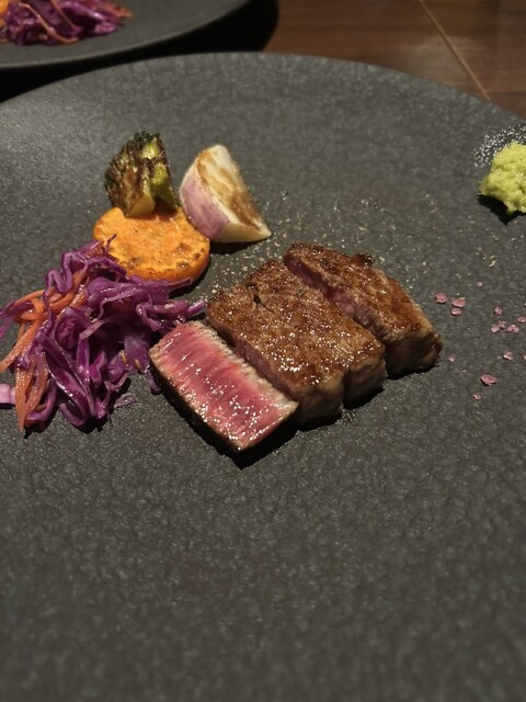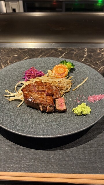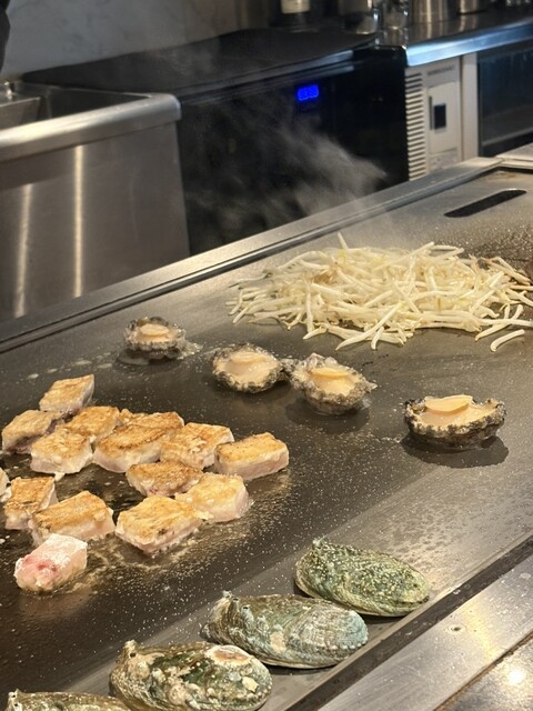 当日はコースをお願いし、黒毛和牛や伊勢海老、あわびなどの海鮮を鉄板焼きならではのスタイルで堪...