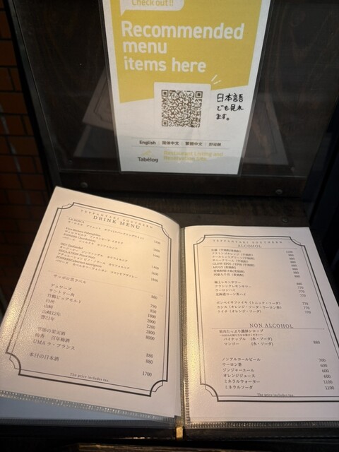 | サービス | 2時間半以上の宴会可、お祝い・サプライズ可(バースデープレート)、複数言語メニューあり(英語) |