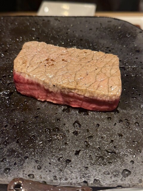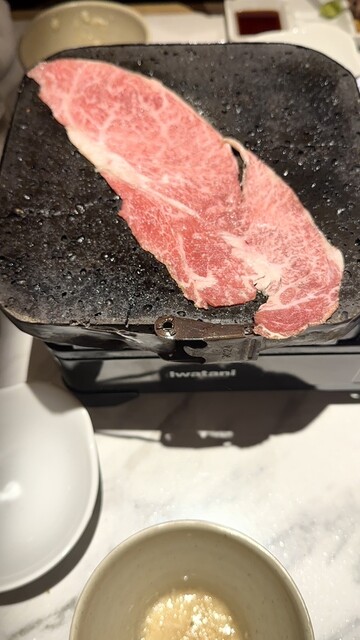 お肉を溶岩プレートで旨み成分を閉じ込め