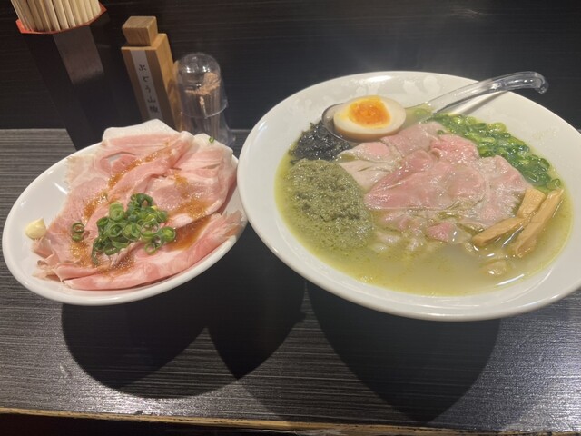 牡蠣塩ラーメン1100円とチャーシュー丼350円を頂きました。