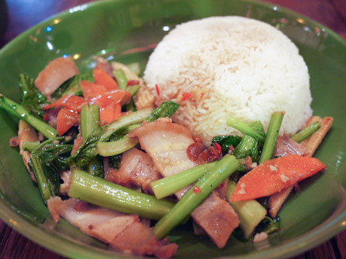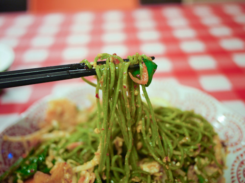 皆さんとても楽しそうに過ごしてらっしゃるのでこちらまで元気をお裾分けしてもらいながら頼んだのはパッシーユー。甘辛い味付けの極太米麺です。