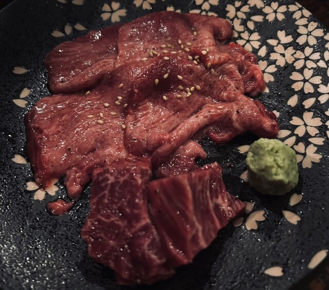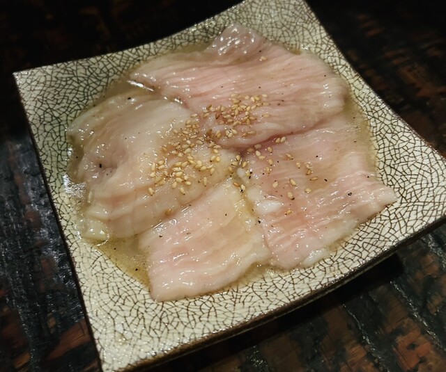 ハラミの色味は、丁寧な処理の証。カッティングも上手なので、焼きやすい。わさび醤油でいただくそれは、柔らかさ・肉々しさ・繊細さ どれを取っても高級焼肉の風格ですね、確かに旨いっ。