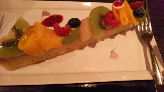 この日は、久しぶりに手作りのフルーツタルトをオーダーしましたが、フルーツがたくさんのってて、下のタルトの生地がクッキーっぽいサクサクの固めの生地で、おいしかったな。