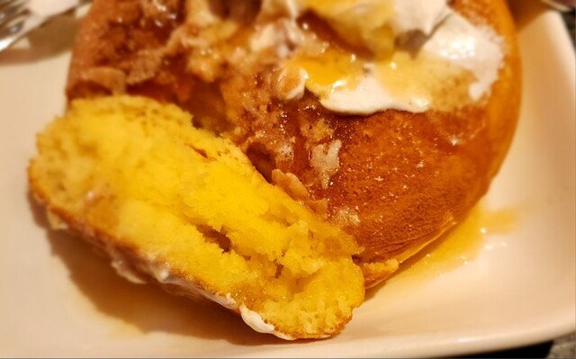 このメープルバターをパンケーキにたっぷりかけて、添えられている甘くないホイップクリームと一緒に食べると本当絶品で、私はパンケーキやホットケーキが大好きなので、過去いろんなところで、パンケーキを食べていますが、今のところ、こちらのこのメープルバタークリームパンケーキが一番すきです。