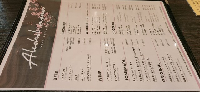 | ドリンク | 焼酎あり、ワインあり、カクテルあり、カクテルにこだわる |